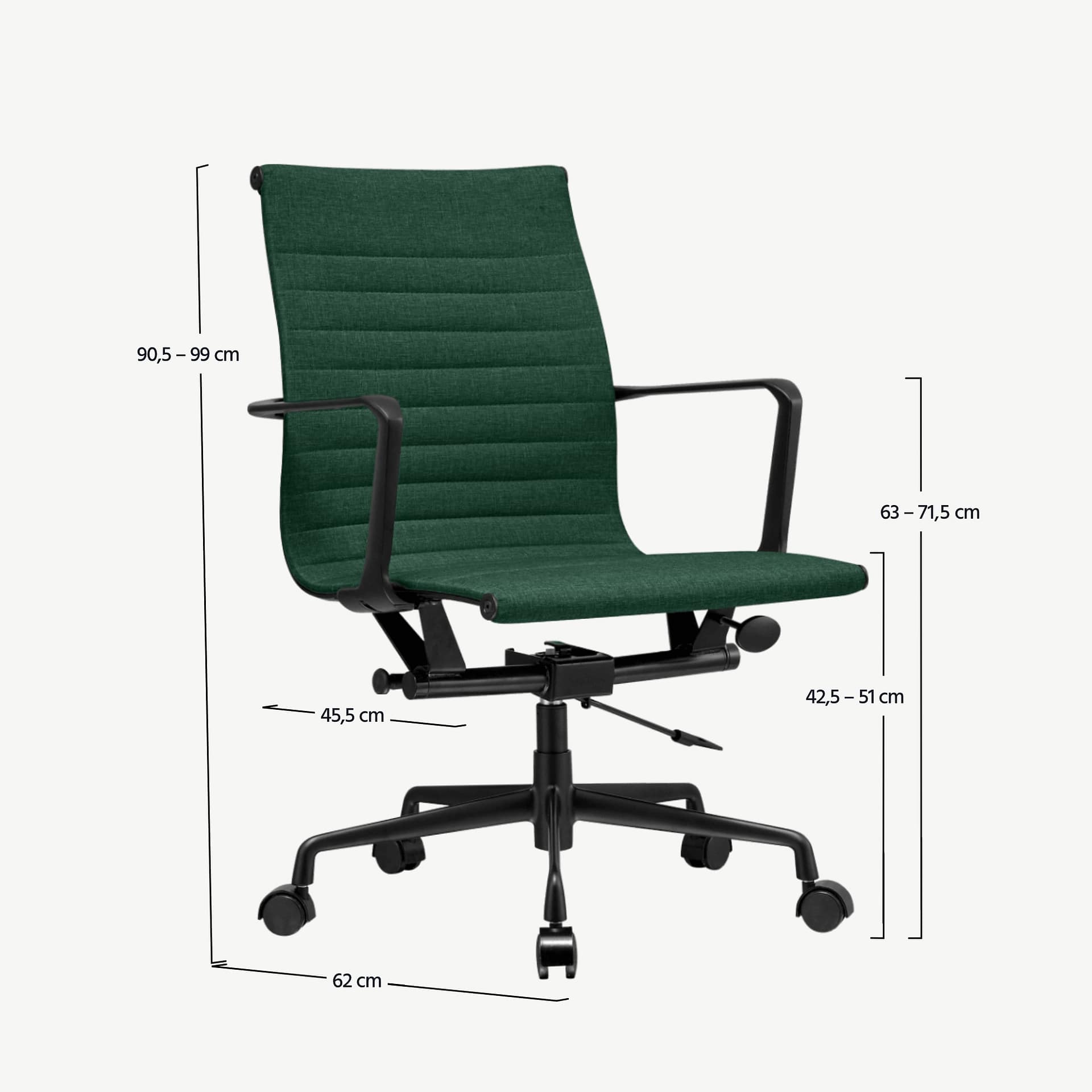 Premium Lowback Ribbed Bürostuhl aus Grünen Leinen | Schwarzer Rahmen