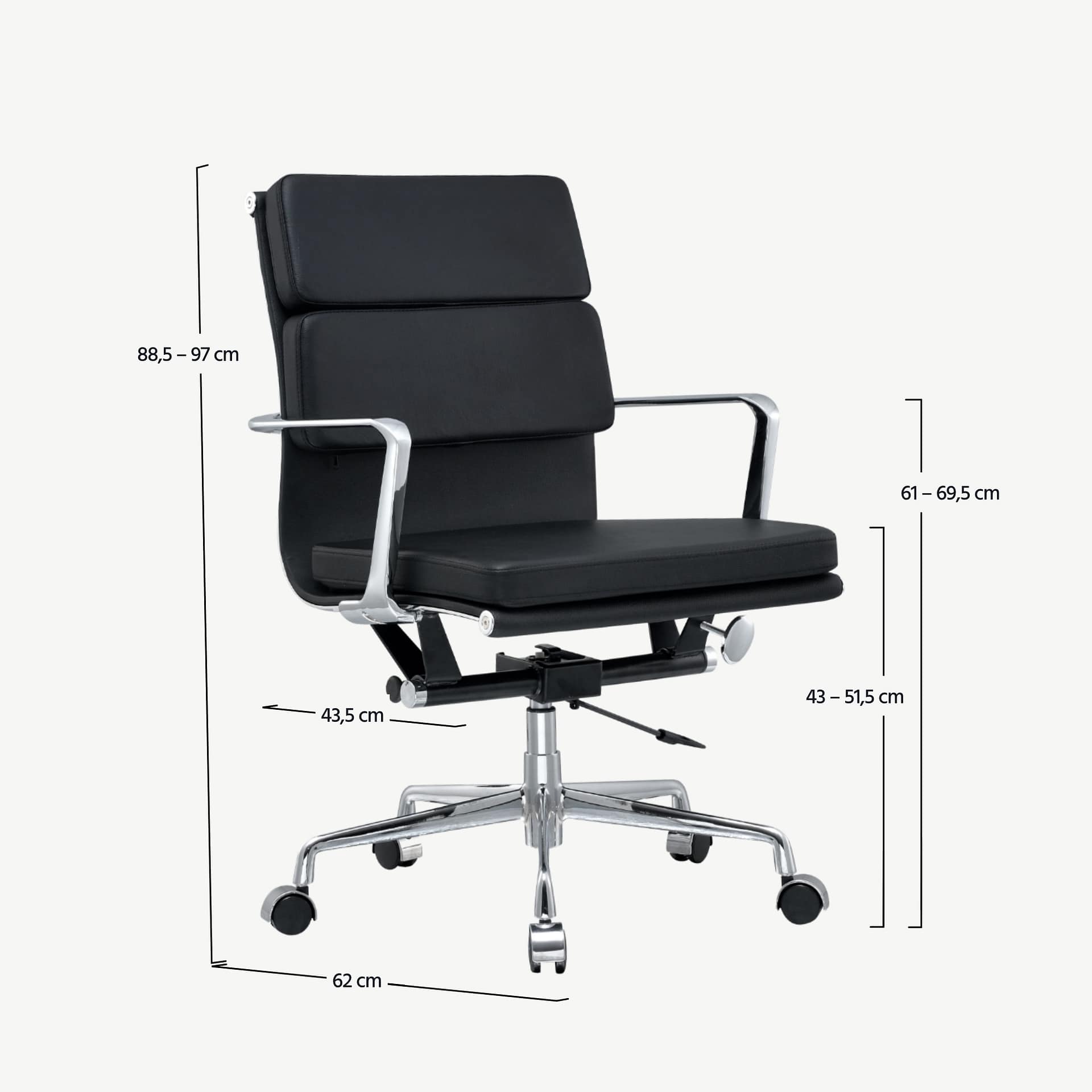 El sólido armazón de aluminio proporciona una estructura robusta y fiable, mientras que el acabado cromado o con recubrimiento de polvo de calidad europea añade un toque de sofisticación y crea un contraste perfecto con la tapicería de piel. Diseñada para ofrecer tanto un atractivo estético como un rendimiento duradero, la Silla de Oficina Premium Softpadded de DOC es el complemento perfecto para cualquier entorno profesional, ya que ofrece tanto estilo como una comodidad excepcional para un trabajo eficaz.
