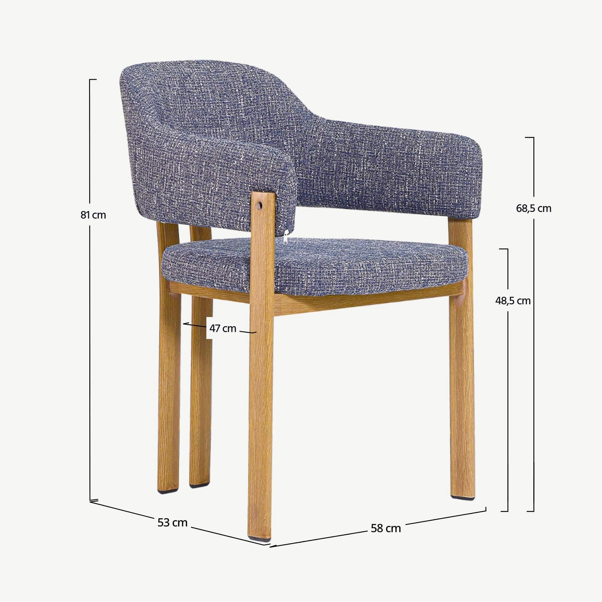 Made for comfort around the table, Isamu offers a supportive backrest and pleasant arm support. Whether it’s a quick coffee or a long dinner with friends, the upholstered seat keeps things comfortable and welcoming.