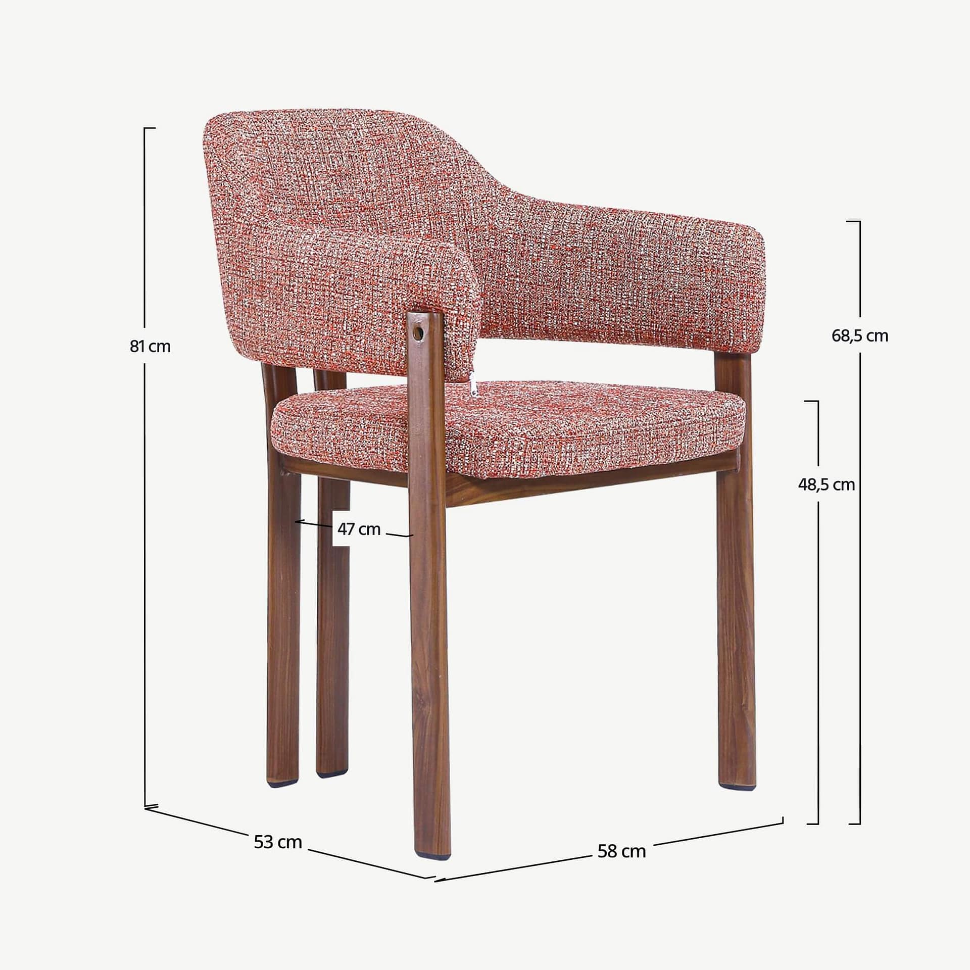 The Isamu Design Dining Chair is designed for interiors that feel balanced and inviting. Its soft silhouette, Red (OTE) fabric upholstery and rich walnut finish base create a warm contrast—Japandi calm with a touch of personality.
