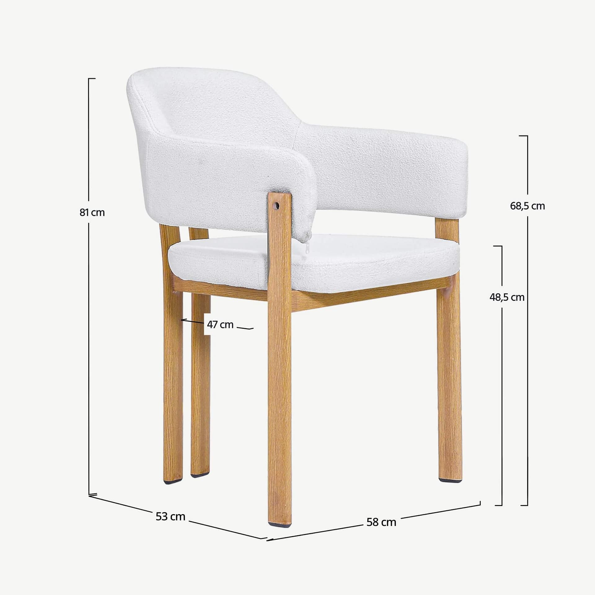 Isamu Japandi Dining Chair – White Bouclé  – Oak Finish Base