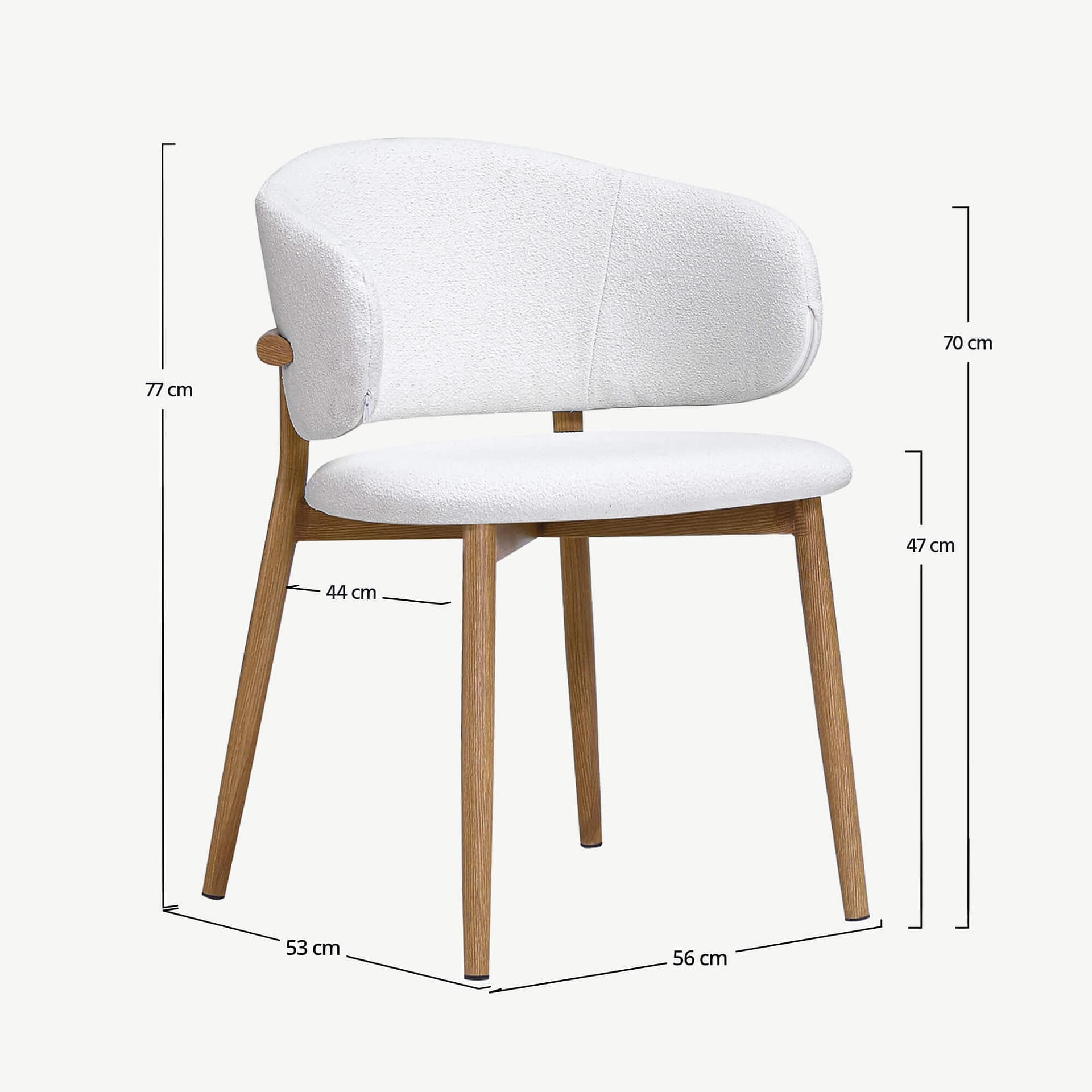 Nagato Design Dining Chair – White Bouclé – Oak Finish Base